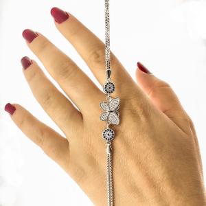 Zirkon Taşlı Çeyrek Altın Çerçeveli Gümüş Bileklik