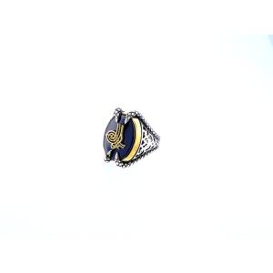 Taşlı Osmanlı Tuğralı Gümüş Erkek Yüzük