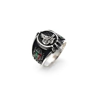 Fruze Taşlı Osmanlı Tuğrası Gümüş Yüzük
