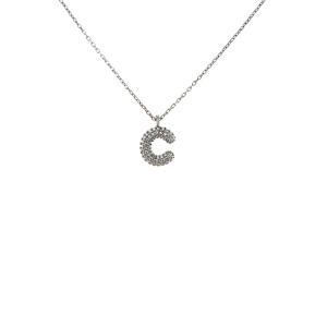 Zirkon Taşlı C Harfi Gümüş Kolye