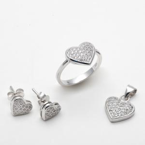 Kalp Desenli Zirkon Taşlı Üçlü Set