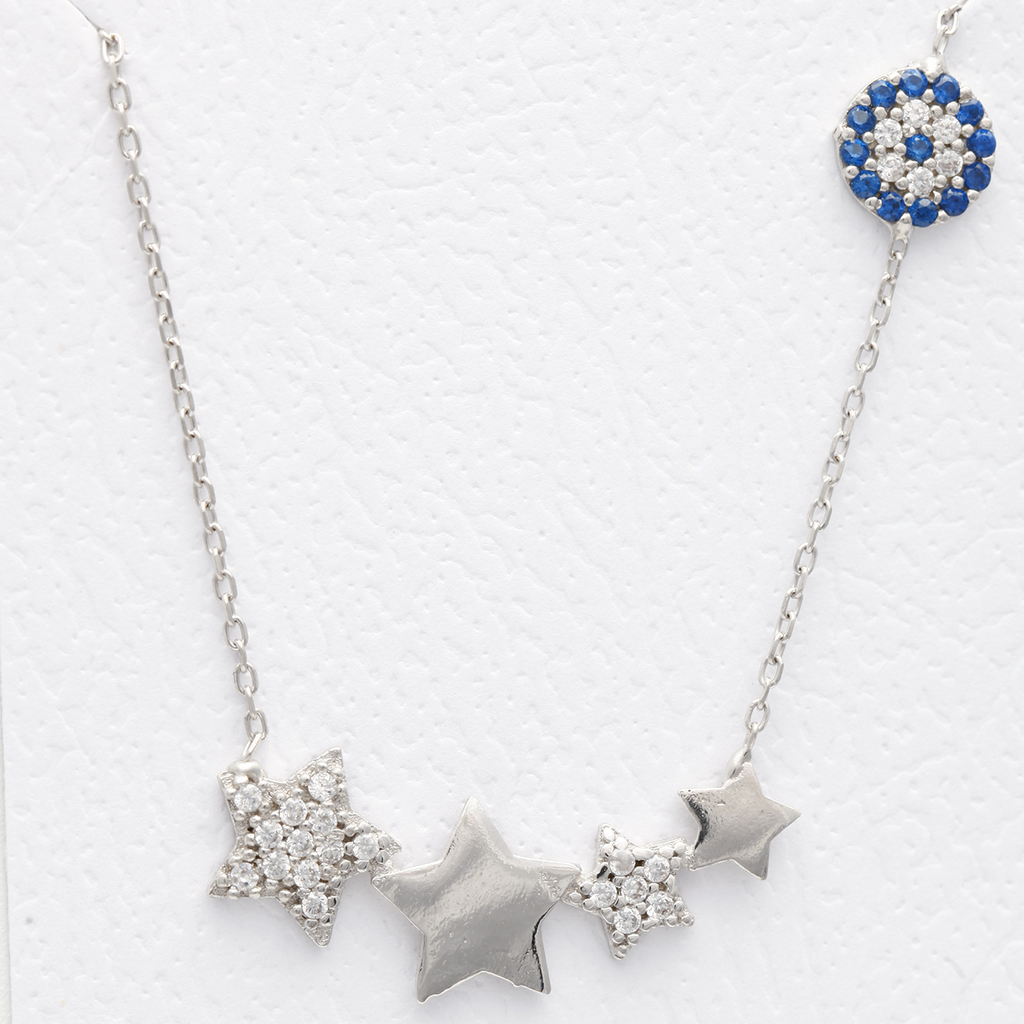 Zirkon Taşlı Yıldız Figürlü Nazar Boncuklu Gümüş Kolye YSLE