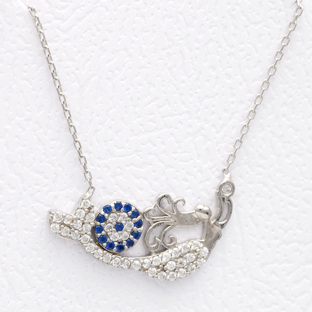 Zirkon Taşlı Deniz Kızı Nazar Boncuklu Gümüş Kolye YSLE
