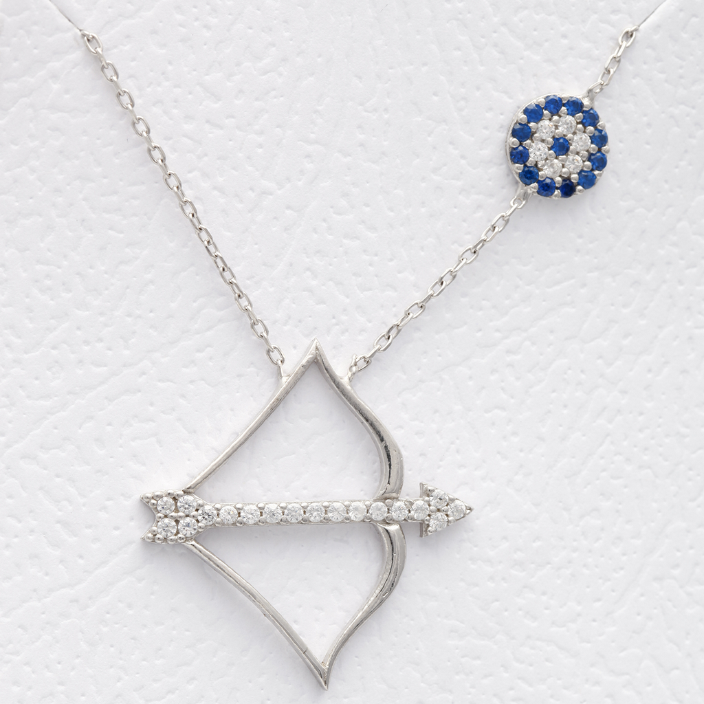 Ok & Yay Figürlü Zirkon Taşlı Nazar Boncuklu Gümüş Kolye YSLE