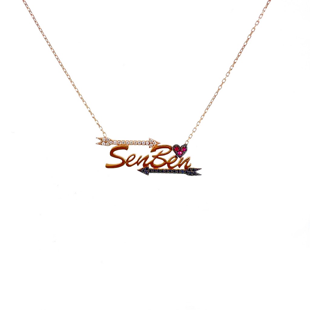 Ok Figürlü Sen Ben Yazılı Gümüş Kolye