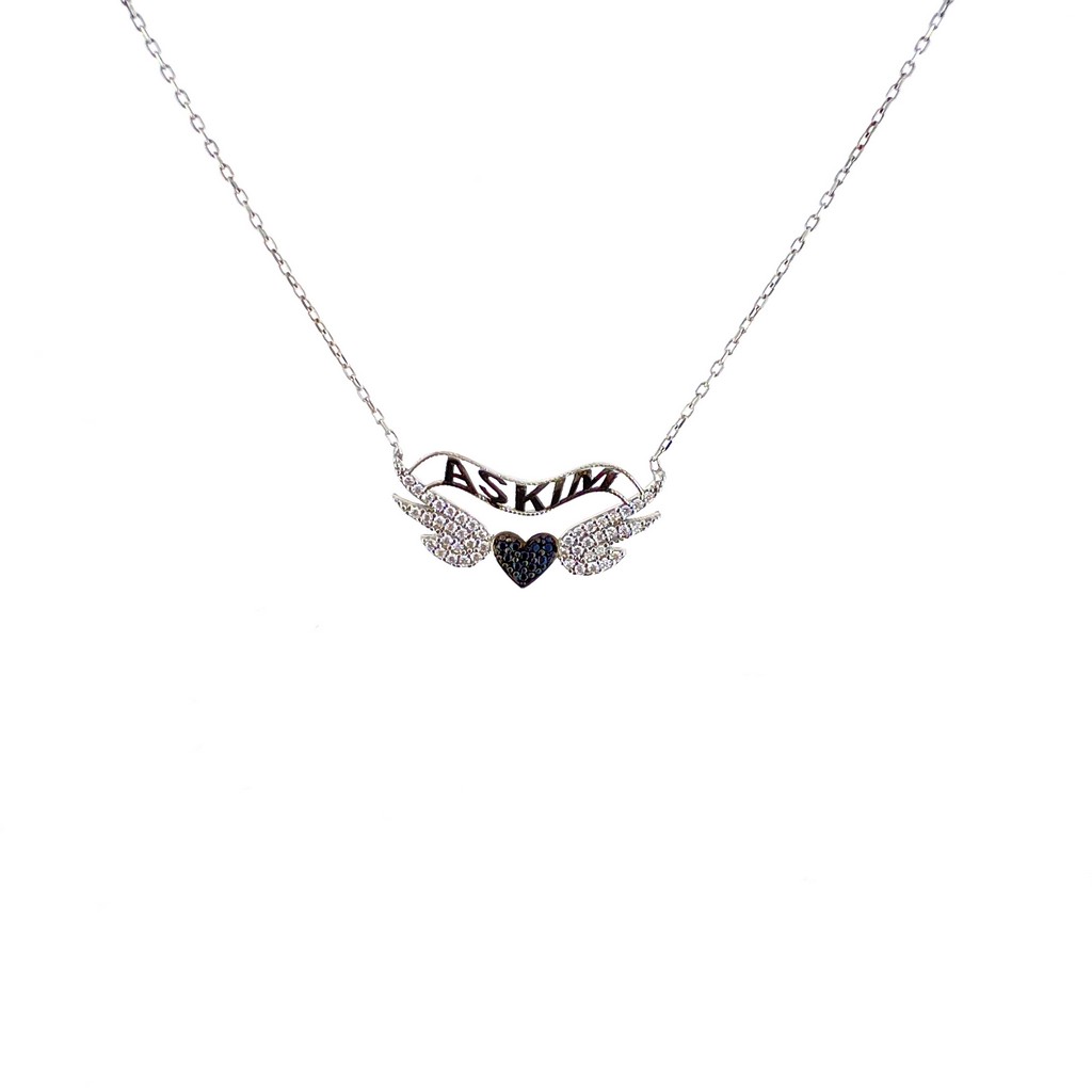 Melek Kanadı Aşkım Yazılı Gümüş Kolye
