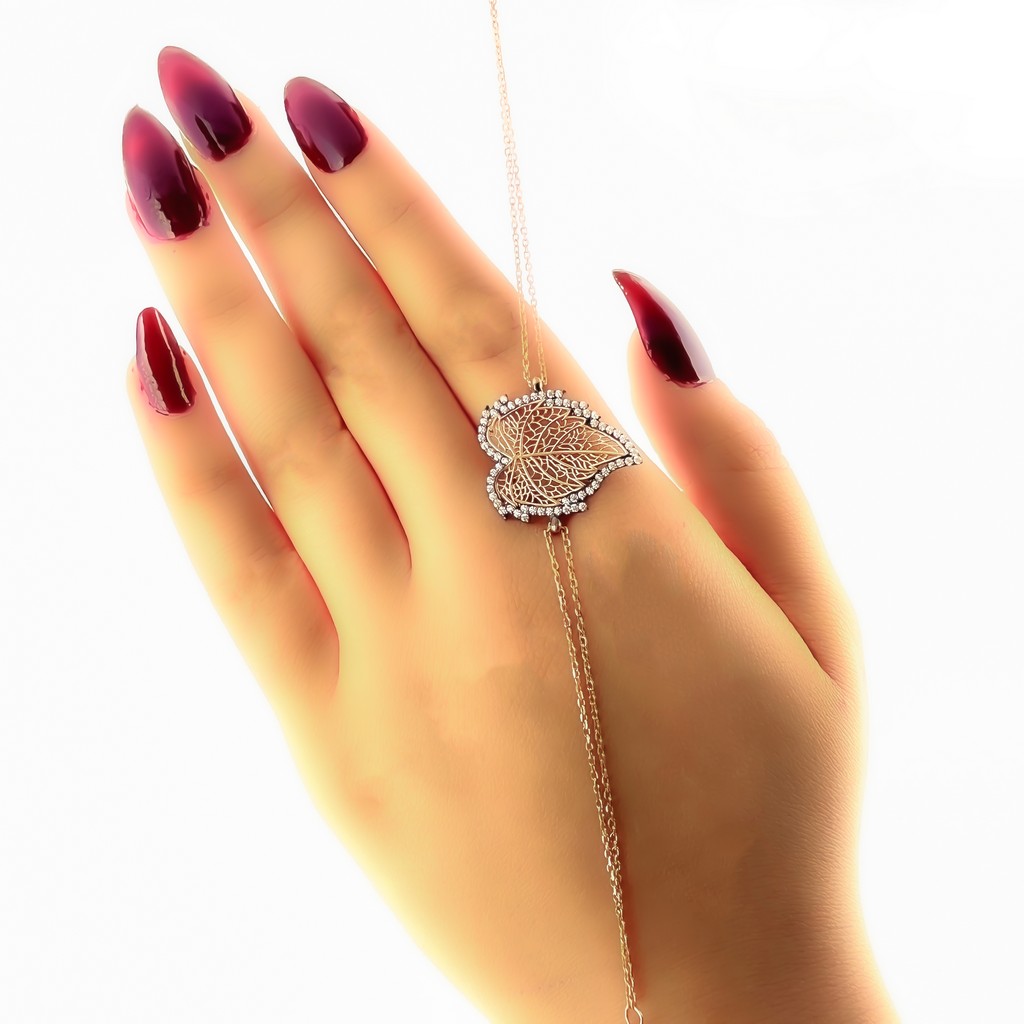 Zirkon Taşlı Çınar Yaprağı Gümüş Bileklik