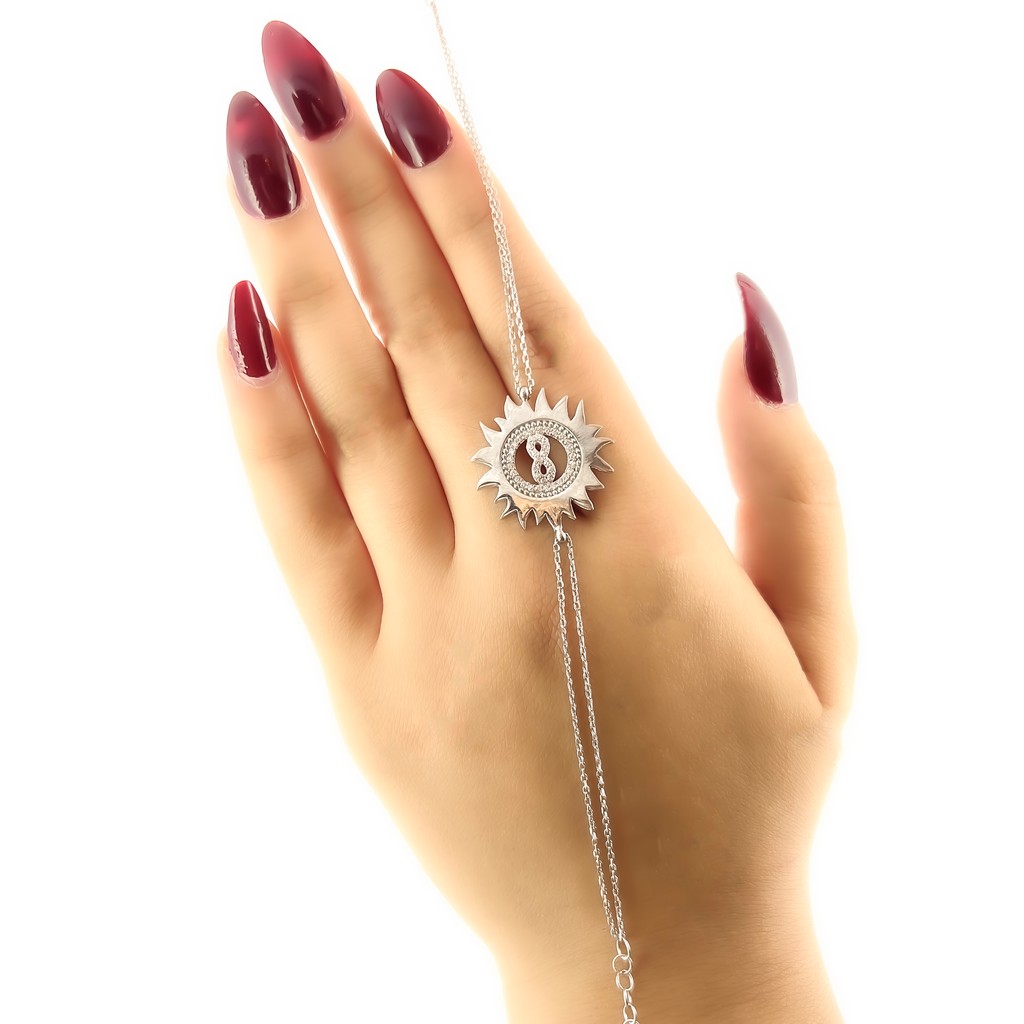Zirkon Taşlı Sonsuzluk Figürlü Güneş Gümüş Bileklik