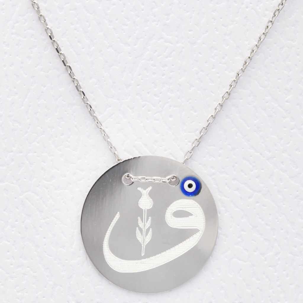Vav Yazılı Lale Motifli Plaka Nazar Boncuklu Gümüş Kolye KÇKB