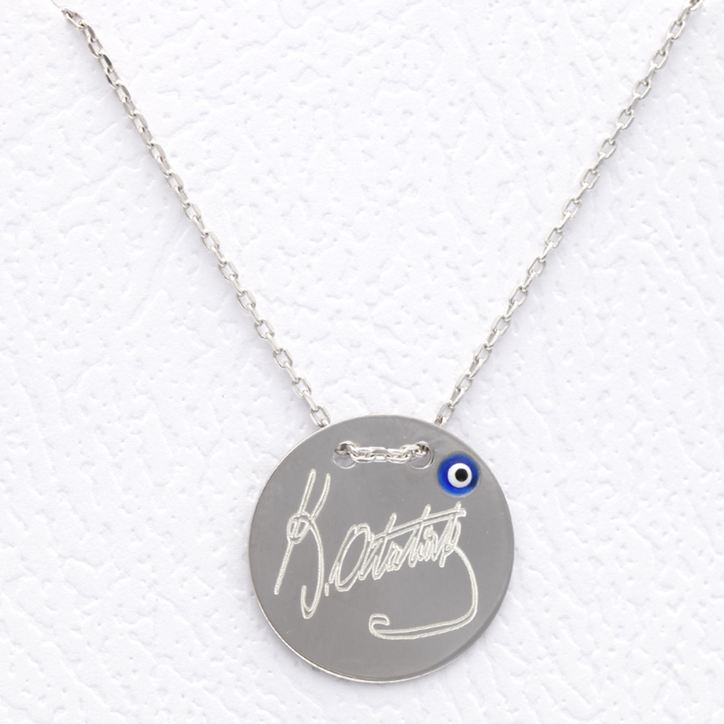 K.Atatürk İmzalı Plakalı Nazar Boncuklu Gümüş Kolye KÇKB